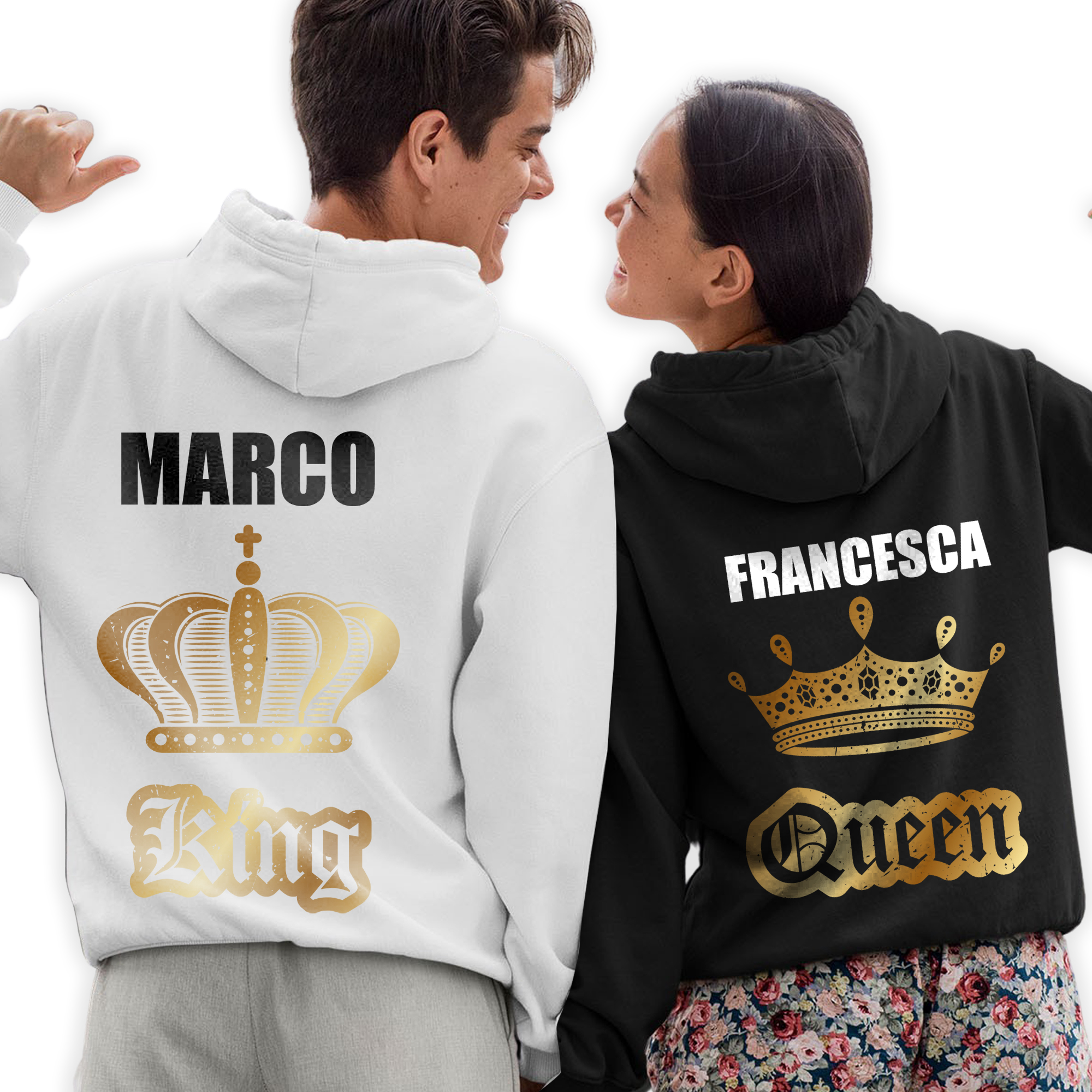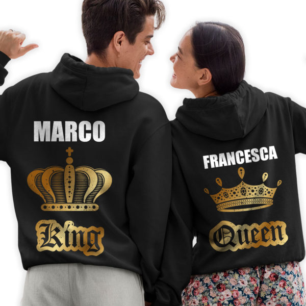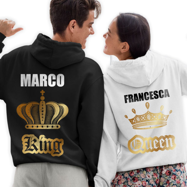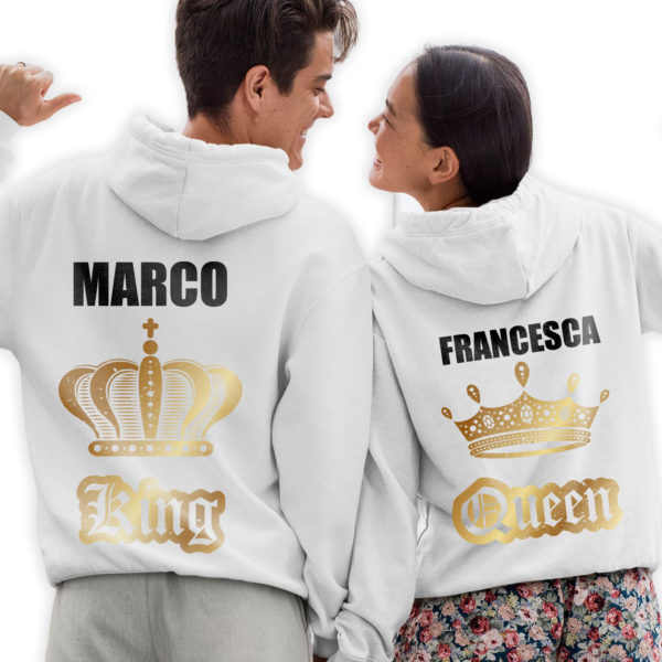 Con questo fantastico coordinato di felpe potrai dire a tutti chi è la tua Queen o il tuo King e aggiungendo il nome della tua dolce metà lo renderai un regalo unico e originale 👑