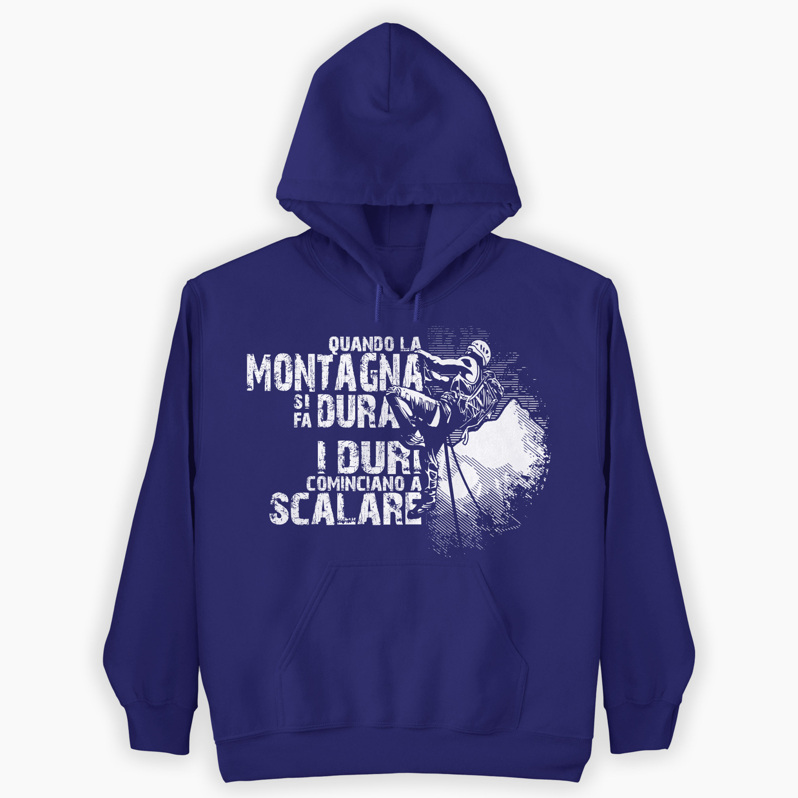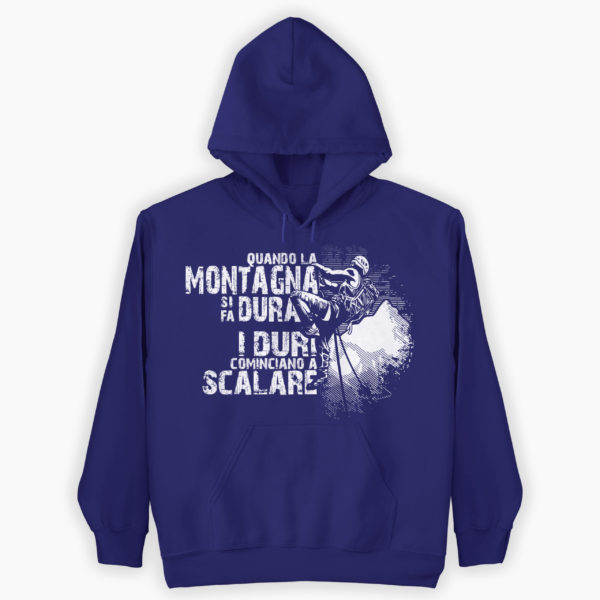 Simpatica felpa per gli amanti della montagna, con la scritta divertente “Quando la montagna si fa dura i duri cominciano a scalare” un regalo perfetto per chi ama scalare le cime più alte dei monti