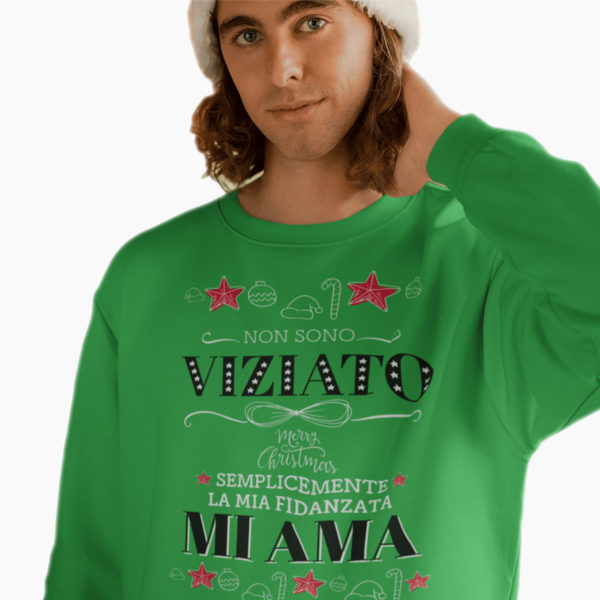 Splendida Felpa Natalizia con Scritta Divertente: “Non Sono Viziata Semplicemente La Mia Fidanzata Mi Ama” un’idea unica e originale da regalare a natale a chi ami di più.