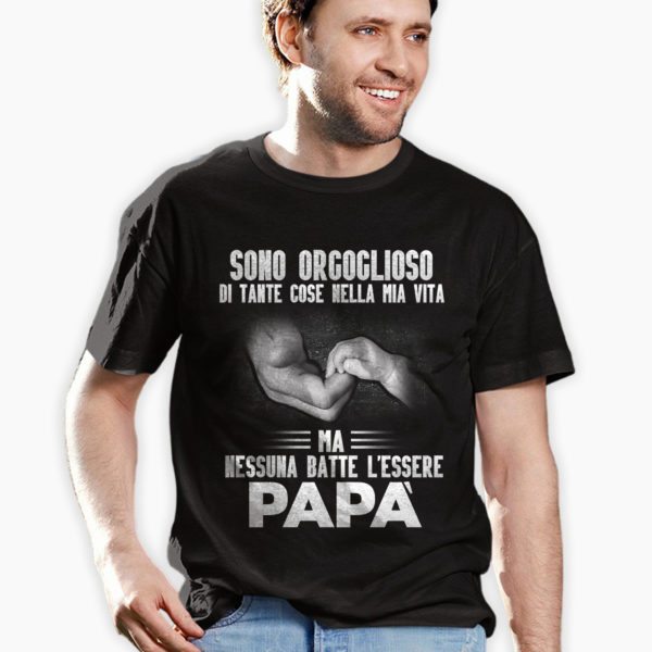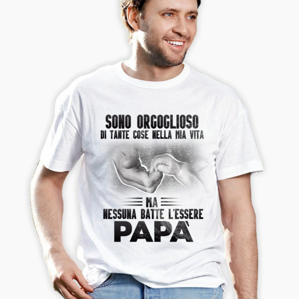 “Sono Orgoglioso Di Tante Cose Nella Mia Vita Ma Nessuna Batte L’Essere Papà” immaginate la commozione sul volto dell’uomo che riceve quella bellissima t-shirt? Noi siamo certi che la indosserà sempre, orgoglioso di essere un papà speciale.