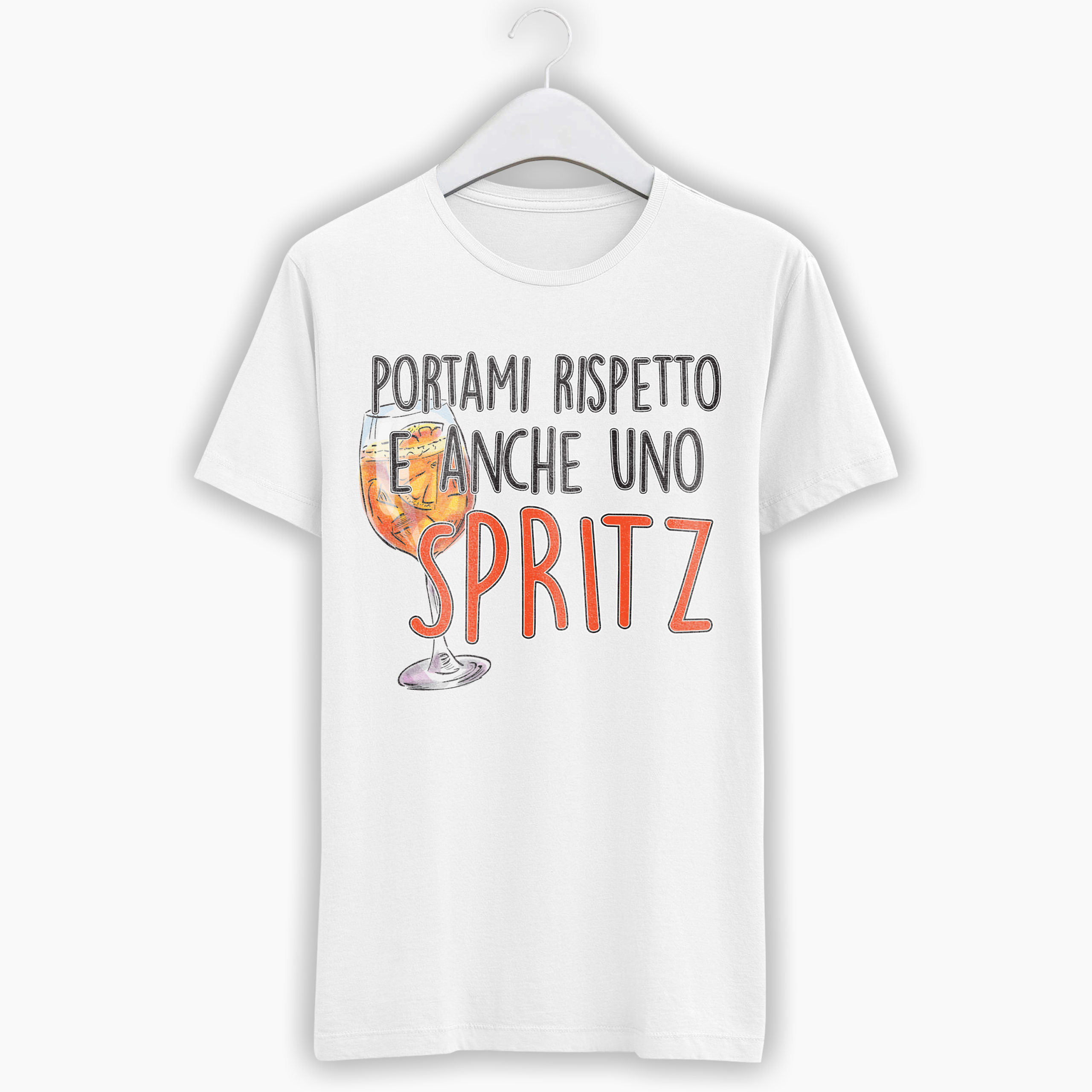 T-shirt Donna con la stampa di un buonissimo cocktail. “Portami rispetto e anche uno spritz” . Perfetta per un’idea regalo unica e originale.